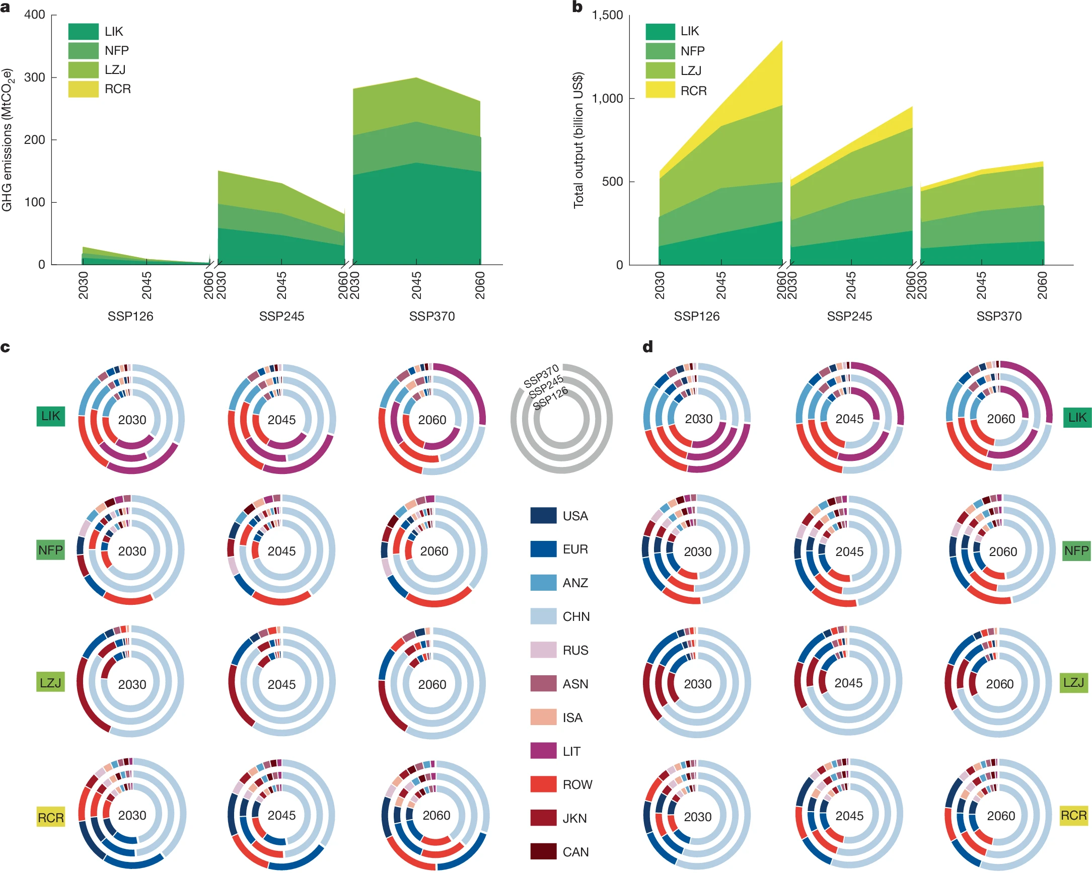 图3:不同循环利用情景下的区域和部门排放变化分析
