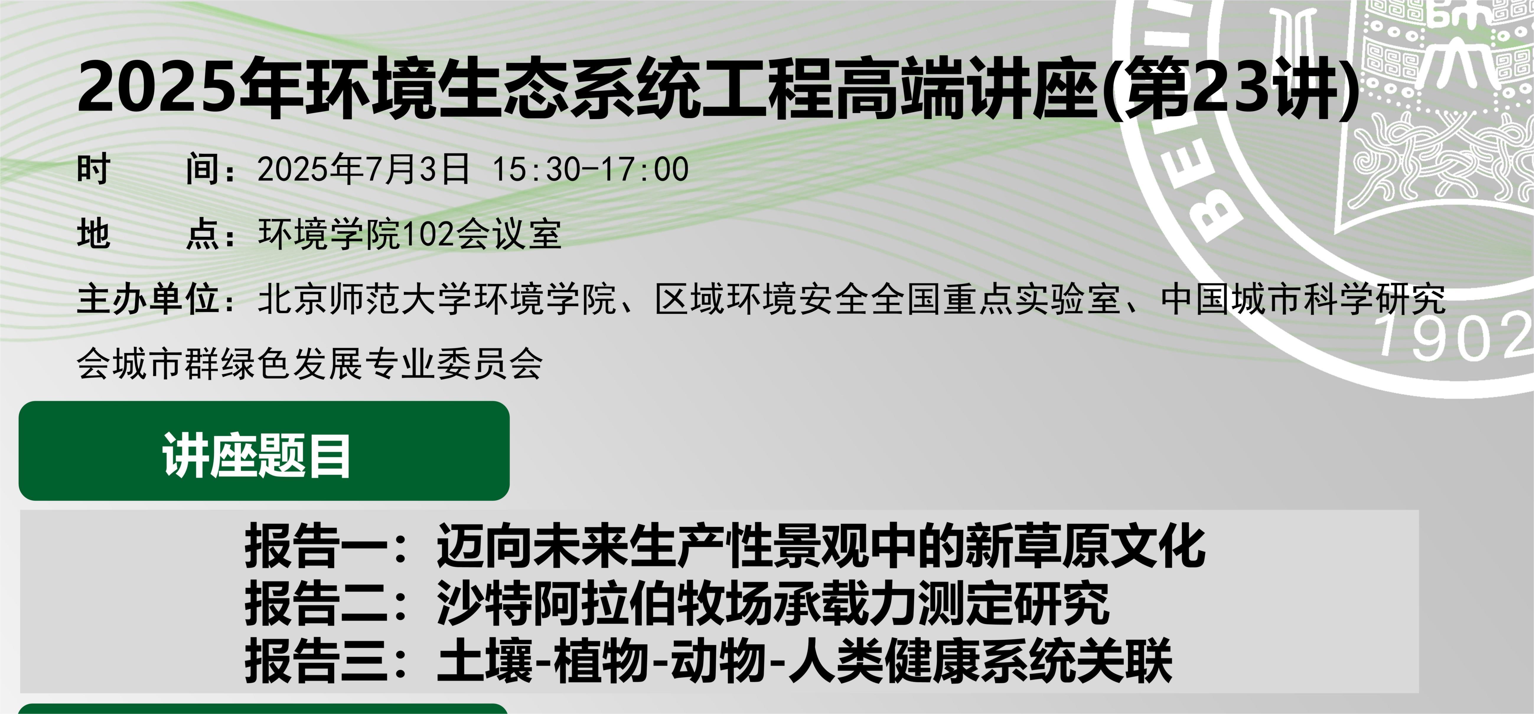 2025年环境生态系统工程高端讲座(第23讲)