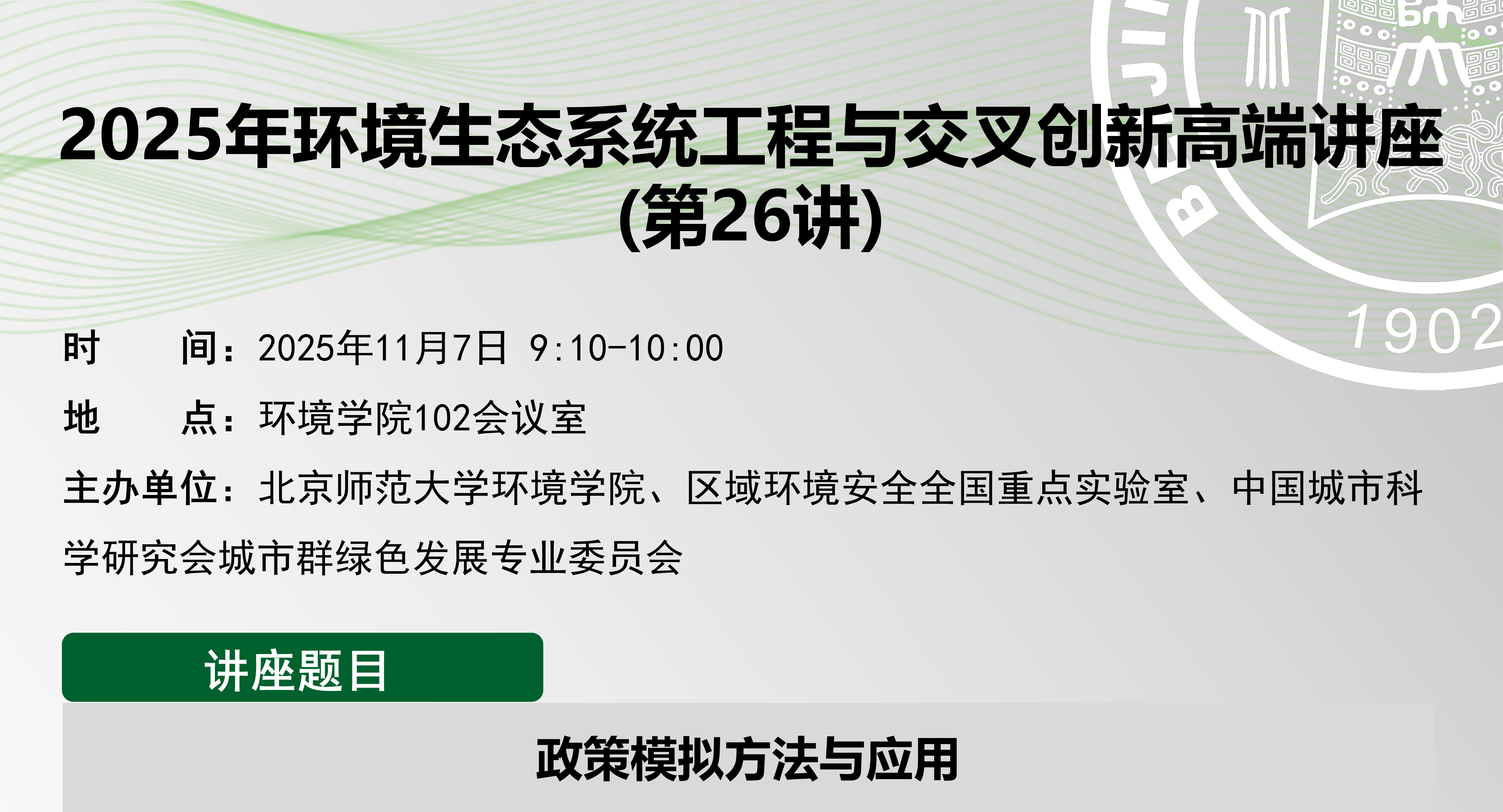 2025年环境生态系统工程与交叉创新高端讲座(第26讲)